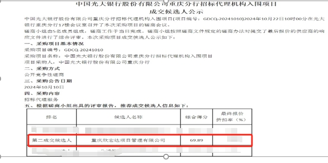 重慶欣宏達(dá)項(xiàng)目管理有限公司中標(biāo)中國(guó)光大銀行股份有限公司重慶分行2025年—2027年招標(biāo)代理機(jī)構(gòu)入圍..